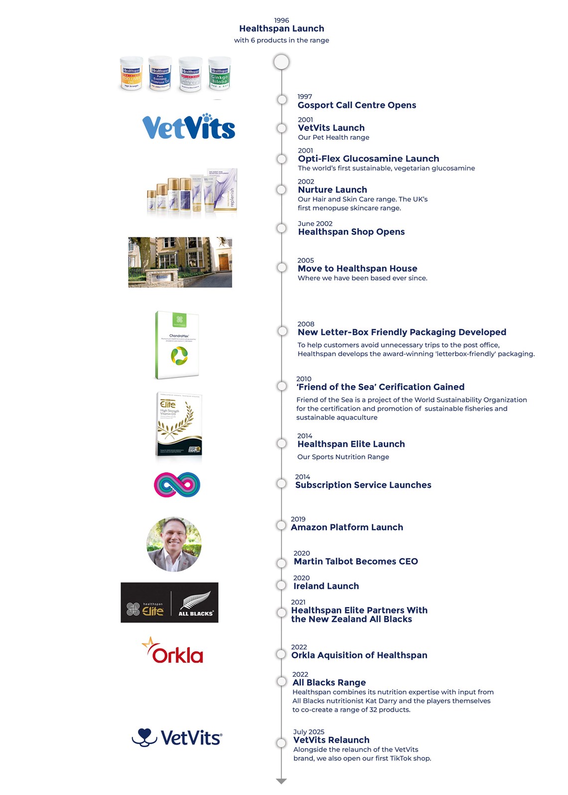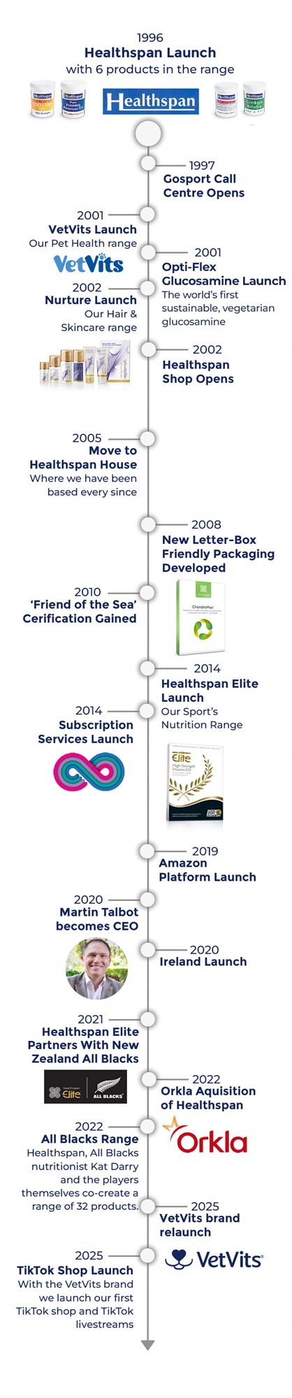 Healthspan, founded by Derek Coates in 1996, began with a modest range of six products, focusing on quality, value, and exceptional customer service. Over the years, the company expanded its portfolio to over 400 products, including dietary supplements and skincare items, primarily under the Healthspan brand.